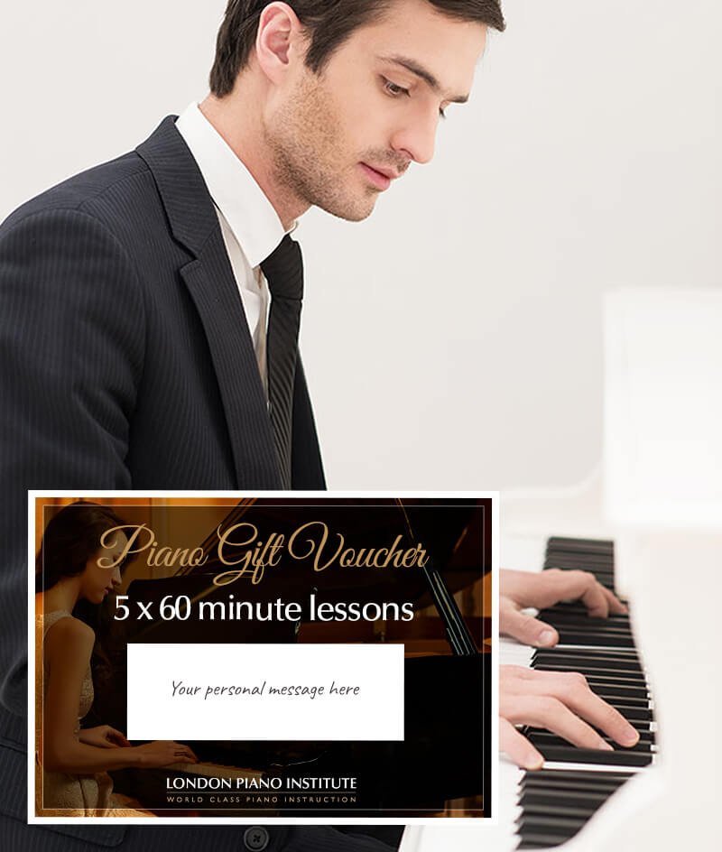 By attending five piano lessons at The London Piano Institute, the bearer will
